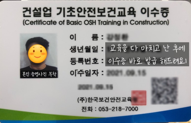 | 건설업안전보건교육 053.218.7000 무료교육지원가능 이수증 당일발급 안전교육 들으러오셔요~ (2) | 2023.03.13 |